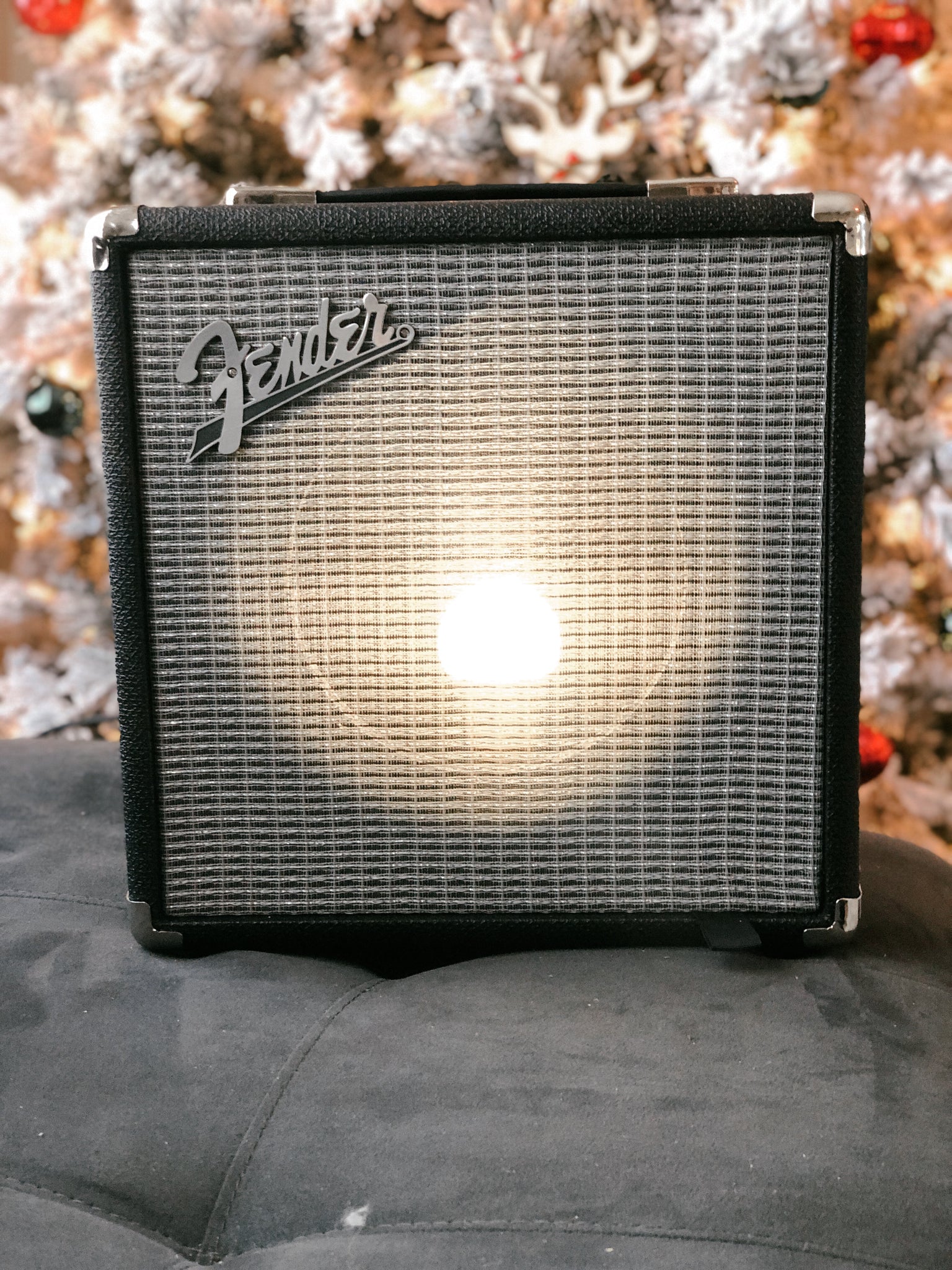 The Fender Rumble Amp Lamp is a known for it's removable silver grill and classic look. Looks great with an LED Edison bulb or color changing light bulb!