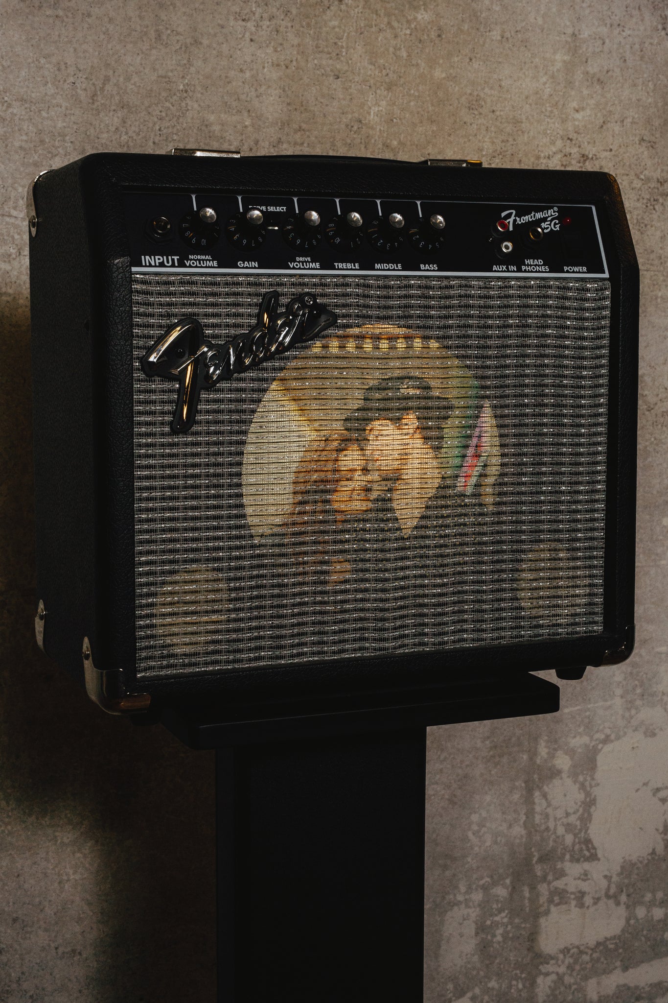 Specs: wrapped in black tolex with a silver grill face.